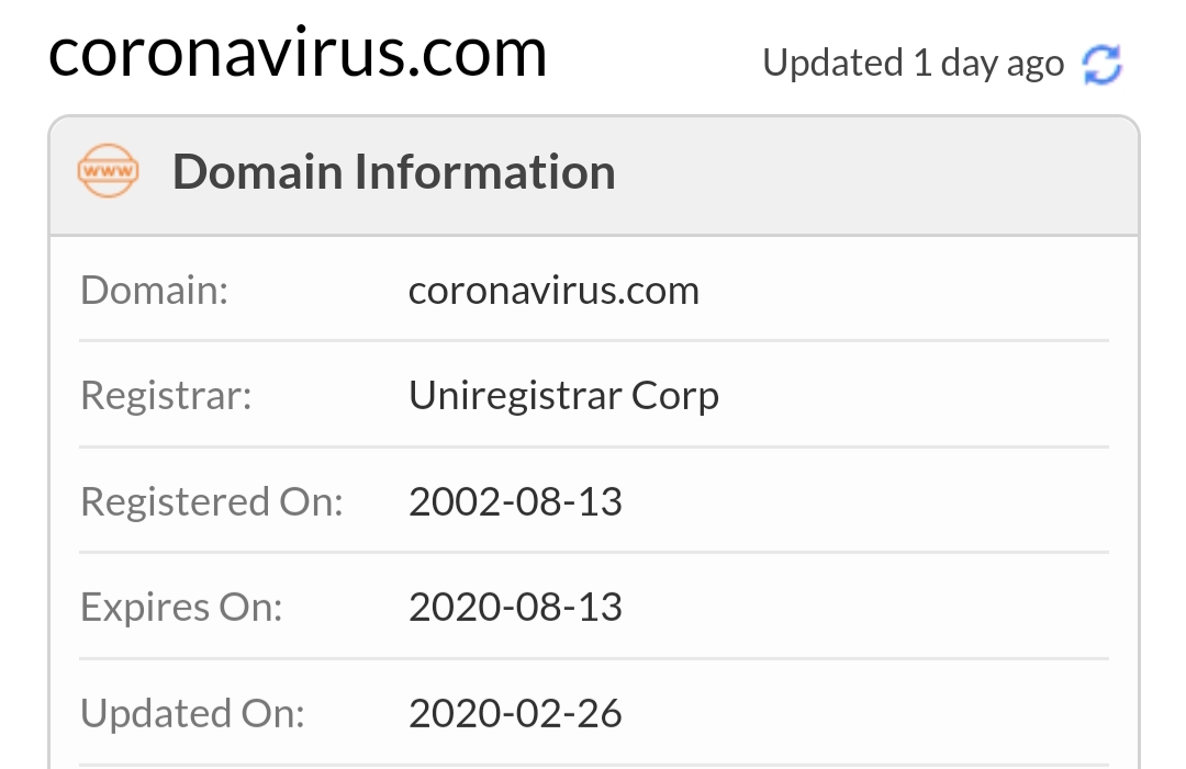 Covid-19 je mutirani oblik koji ulazi u pluÄa i stvara upalu te probleme⊠i nema lijeka jer je virus, pa se Äovjek vlastitim imunoloĆĄkim sustavom mora boriti sa njim. MoĆŸe se pomoÄi antiviroticima i lijekom za HIV u nekim teĆŸim oblicima kod starijih osoba. Naravno, i streptokok moĆŸe uÄi u pluÄa, uzrokovati upalu, ili pak srce i perikarditis. D skratim, hoÄu reÄi da nema mjesta teoriji i uroti po pitanju datuma i godine izrade navedene domene coronavirusdotcom
