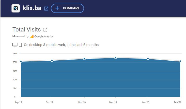 Oni kazu da Klix.ba ima oko 3m pregleda za februar⊠ja sa svojim shit sajtom i 500k lajkova sam imao skoro 1,5m