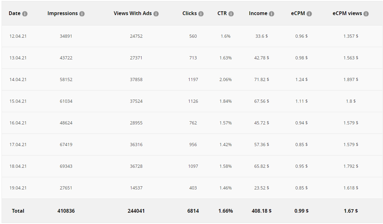 A to za preglede je istina, na 50k toliko klikova za native, dok mgid ili neka druga ima mnogo vise klikova