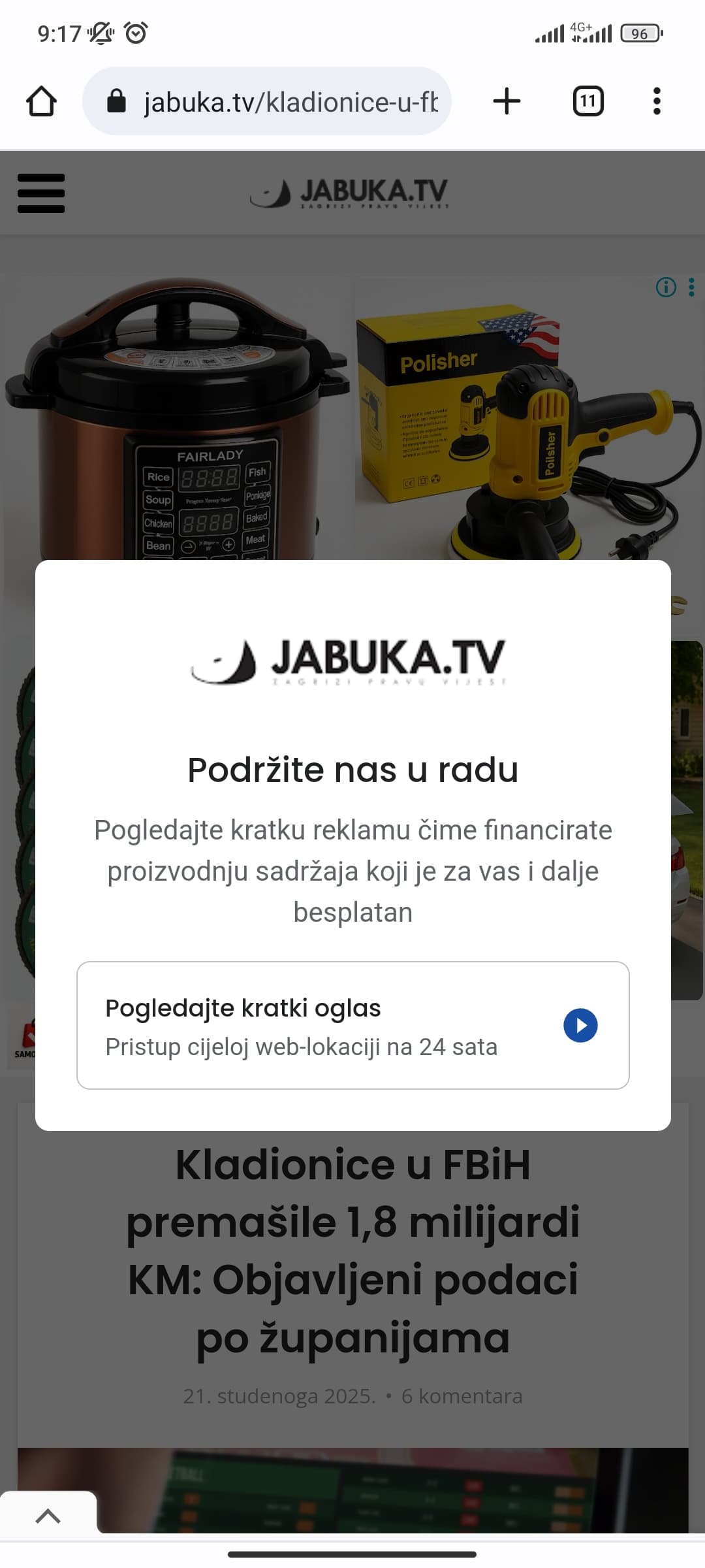Slično sam viodio na par regionalnih novinskih portala, moraš sačekati 15ak sekundi reklame.