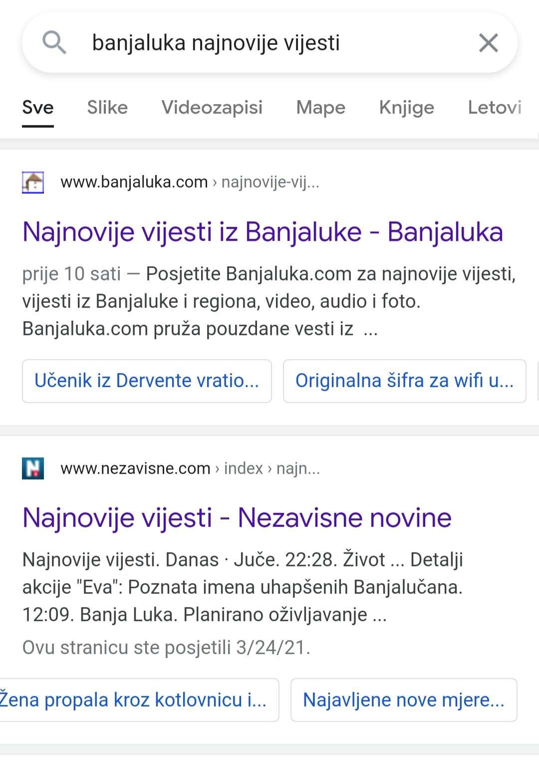 A vidi ovo ukucam banjaluka vijesti na drugom mjestu Nezavisne … nigdje im se ne spominje rijec banjaluka ni tittle ni desc.