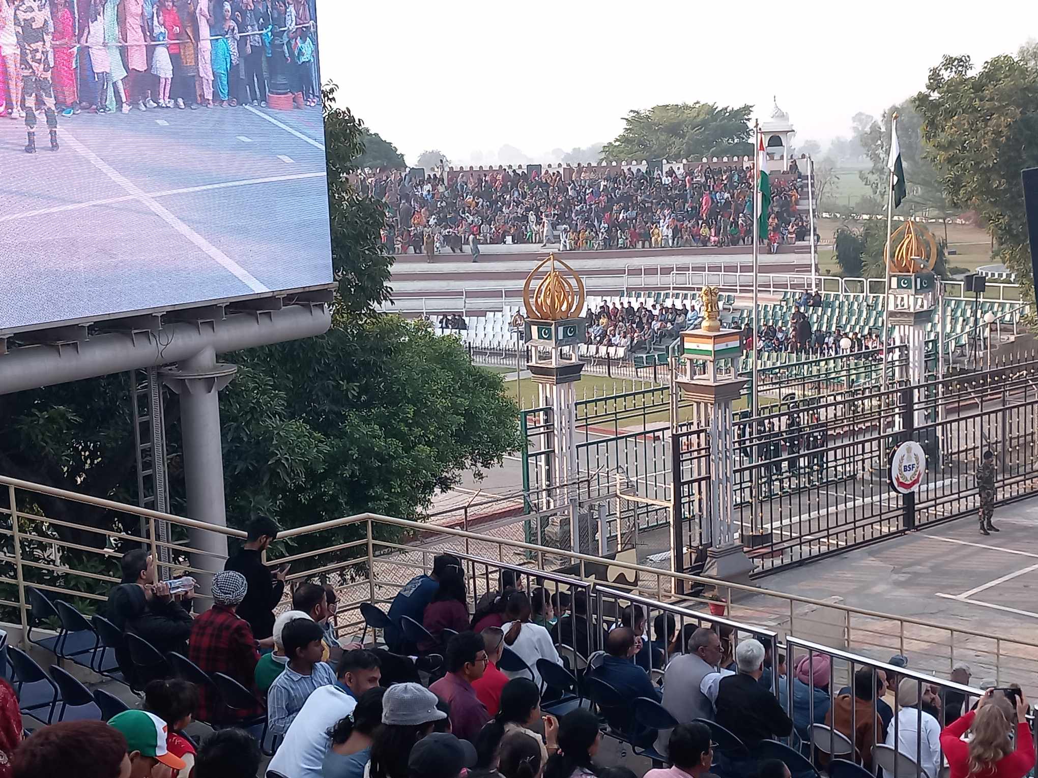 Osim toga, AMritsar je i na granici. Na granii svaki dan imate ceremoniju zatvaranja granice- s obe strane izgradjene tribine, ottprilike 35,000 ljudi. AKo dodjete za vikend, bice krcato, s jedne strane Indijci navijaju, s druge Pakistanci, a dole na podijumu secu ovi vojnici ko pijetlovi.
